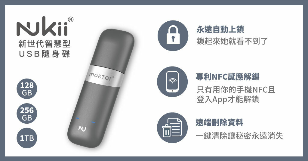 A:Nukii不需要網路,檔案不用上傳雲端,就沒有外流的風險。就算儲存檔案的Nukii遺失,隨時自動上鎖能防止被他人讀取!