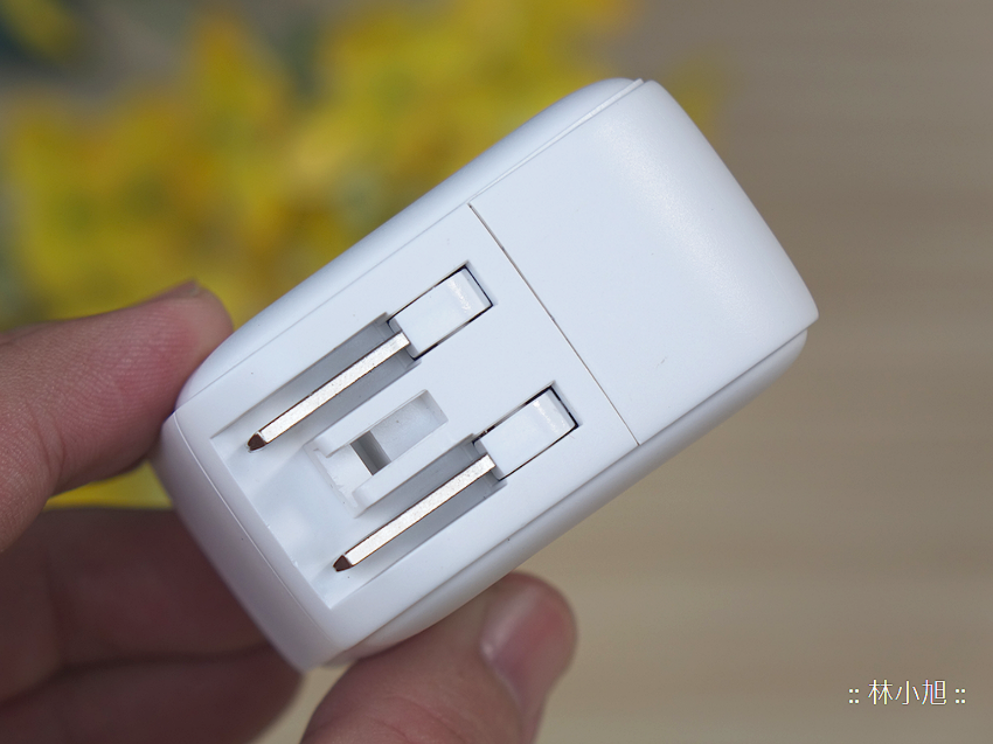 小小的體積旁,可以看到隱藏折疊式的插頭,平常沒有使用或外出攜帶時,只要把插頭往內折就能輕鬆收納,因此外出時可以完全不用擔心凸出的針腳傷害到包包內的其他物品!