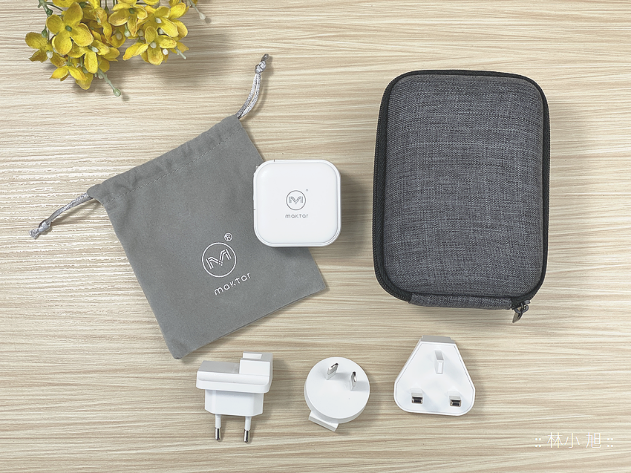 「Maktar 66WGaN 口袋快充™」標配附贈絨布收納包可以方便外出攜帶,還能另外加購萬國轉接頭 (英規、歐規、澳規),這次我還收到先前活動限定的硬殼收納盒,可以讓外出旅行時攜帶都很方便!