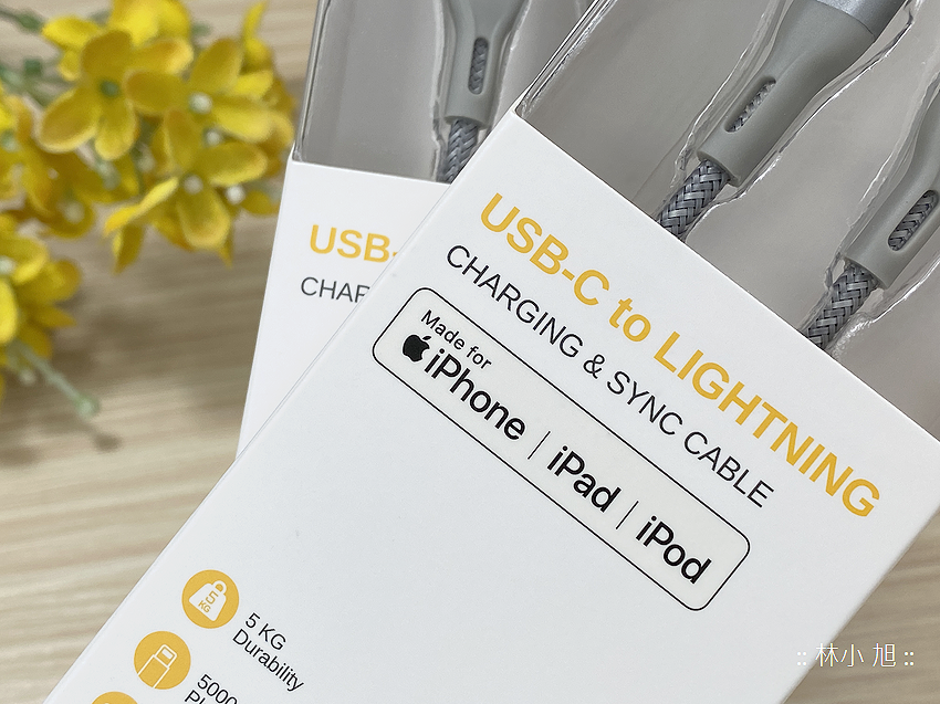 其中蘋果專用的 USB Type-C to Lightning 快充傳輸線,也都通過蘋果 MFi 認證授權 (包裝上可看到認證圖樣),能確保蘋果裝置的充電安全性與相容性,完全也不用擔心 iOS 版本更新之後無法使用的狀況!