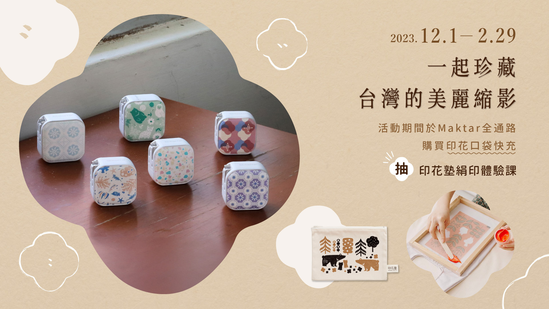 - 上述活動期間於Maktar官方通路及官方認可代理商購買"印花聯名款口袋快充系列",所購買之商品無付款失敗、訂單取消、退貨之交易情形方列入計算。於表單中登入購買之發票號碼或訂單編號、姓名、聯絡電話等資料,完成表單送出後即可獲得抽獎資格!每筆訂單/發票限登錄乙次。