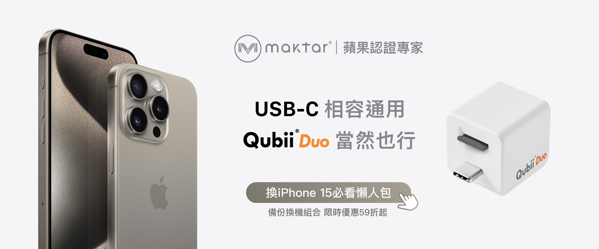 例:買iPhone 15 Pro 128G $36,900 + 搭配QubiiDuo 備份豆腐+1TB(約$4,490)立即擴充iPhone 15容量到1T ,相較iPhone 15 Pro 1T 要價$54,400,Qubii備份豆腐幫你省下上萬費用!(約$13,010),超簡單備份神器Qubii備份豆腐,免上傳雲端,一鍵備份+換機還原照片都能快速輕鬆搞定!