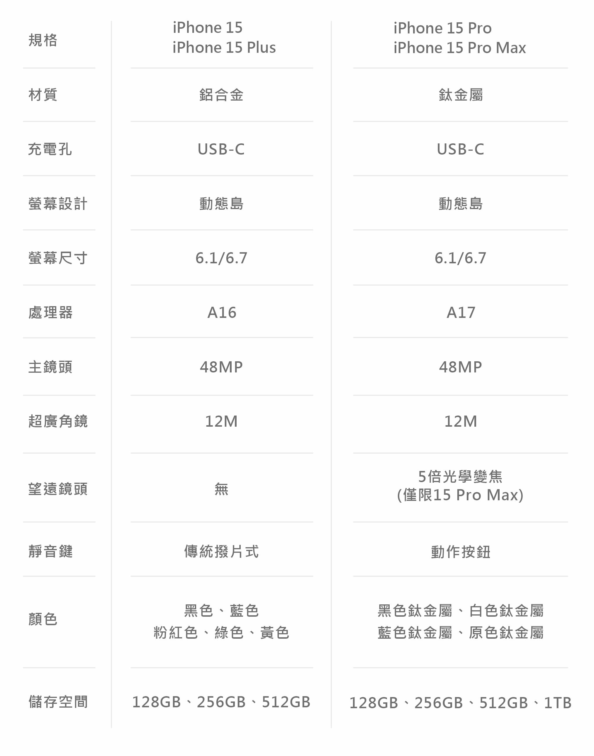| 型號 | iPhone 15 | iPhone 15 Plus |