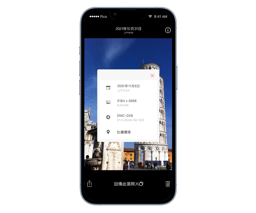 口袋相簿保留您iPhone照片原始像素,不壓縮原檔,讓您可以擁有最高畫質,免費雲端服務不僅會壓縮照片解析度,空間也有限制。 口袋相簿可備份iPhone 專屬HEIC格式,也可備份為常用的JPG格式。透過口袋相簿App您可以迅速獲得照片拍攝資訊(時間/解析度/地點),也可以直接傳送到出去與好友分享美照!