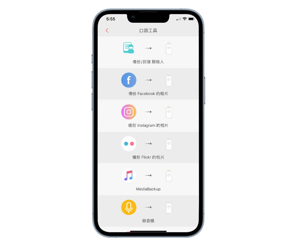 口袋相簿不只能備份照片影片,還可備份聯絡人、FB、IG、Flickr、音樂、等內容。 當手機空間不足,還可直接拍照、錄影、錄音到口袋相簿裡,節省手機空間!