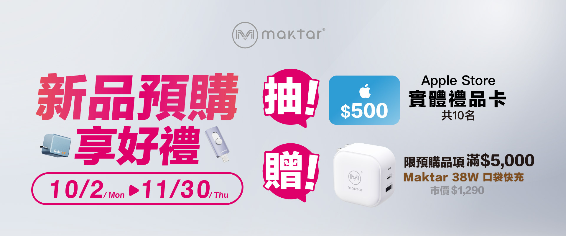 1. 抽獎活動僅限定Maktar官方直營網站(https://shop.maktar.com/)