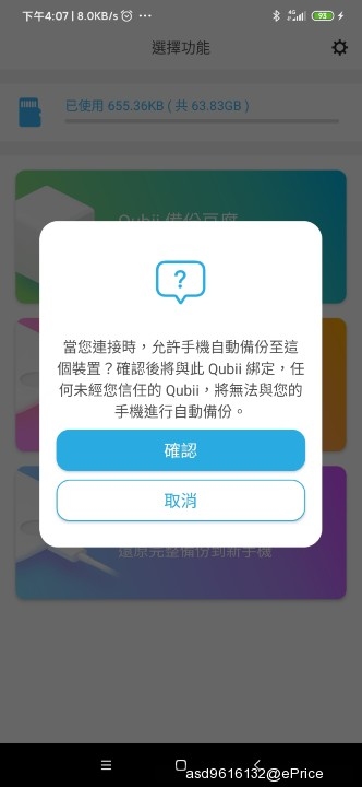 將有傳輸功能的充電線接上,APP畫面勾上允許