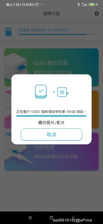 備份到10100個檔案約花費197分鐘,大約每分鐘備份50個檔案 (測試手機小米9單張照片約為4mb)