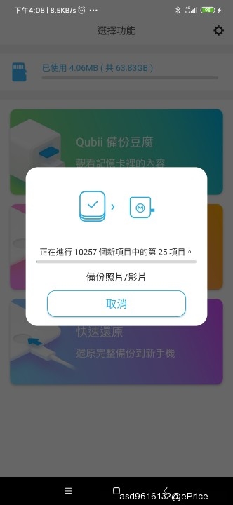 (自己手機是256GB,剛好可以試試看換卡備份的功能)