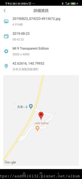 在點入照片之後,可以看到右上角的詳細資訊 (日本洞爺湖)
