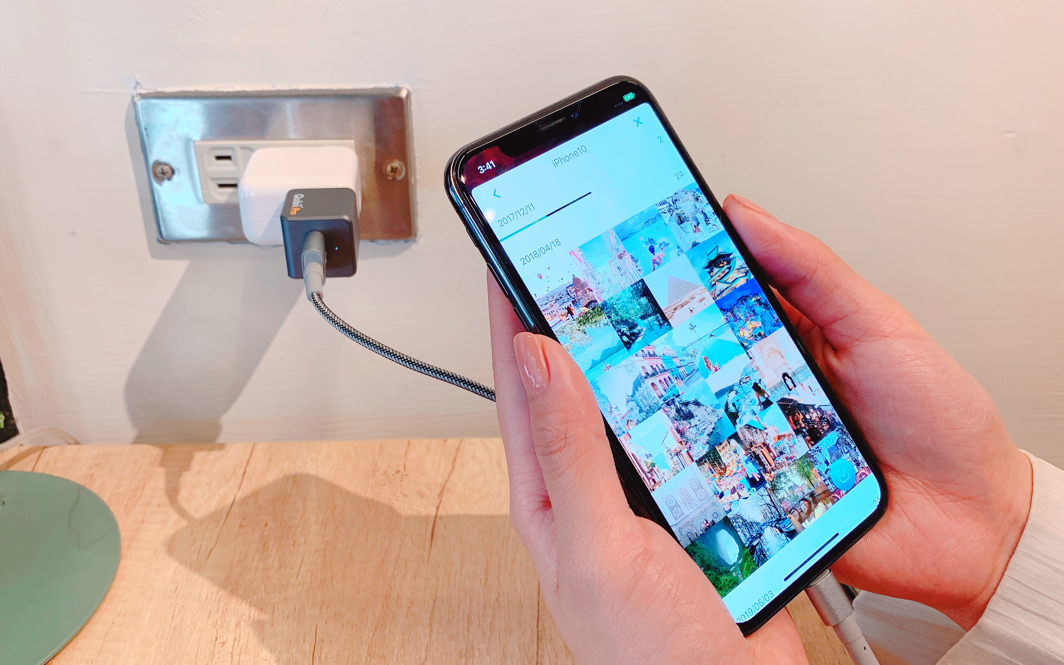 它就是一個接在你手機充電頭和充電線的小配件,可以在你手機充電的時候,順便備份你手機裡的東西。