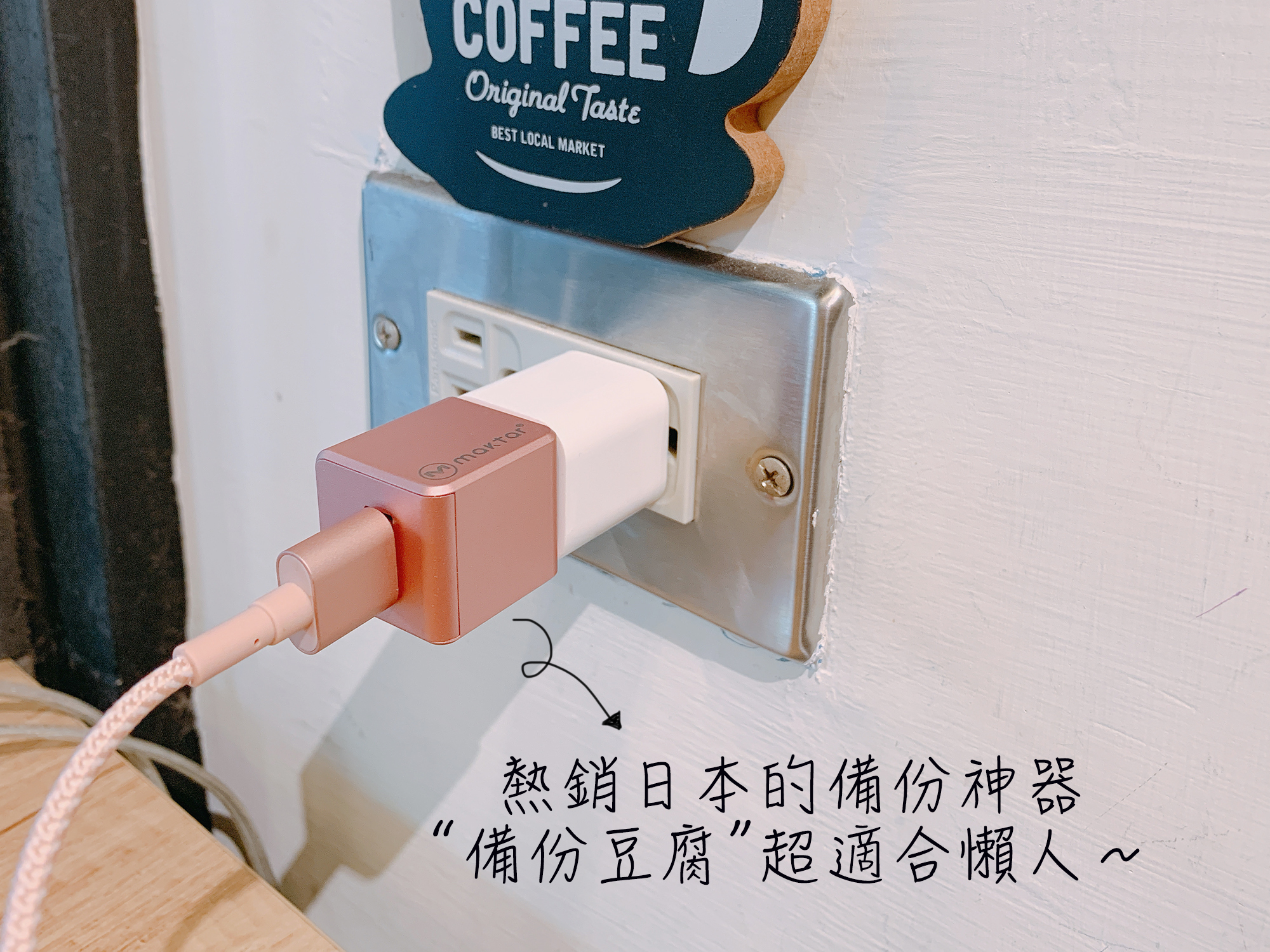 先將備份豆腐接在充電頭與充電線之間