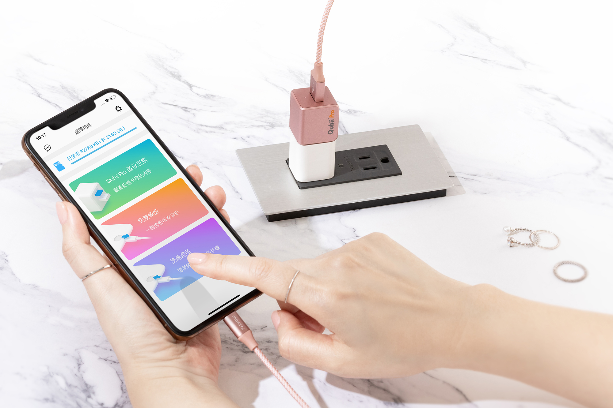 工作都在外頭跑,週末忙著約會,忙翻了!一看到手機滿到不行,哪有空備份!還好有Qubii,只要睡前,手機插著充電,就自己備份喇!什麼事都不用做,超適合我這個懶人。