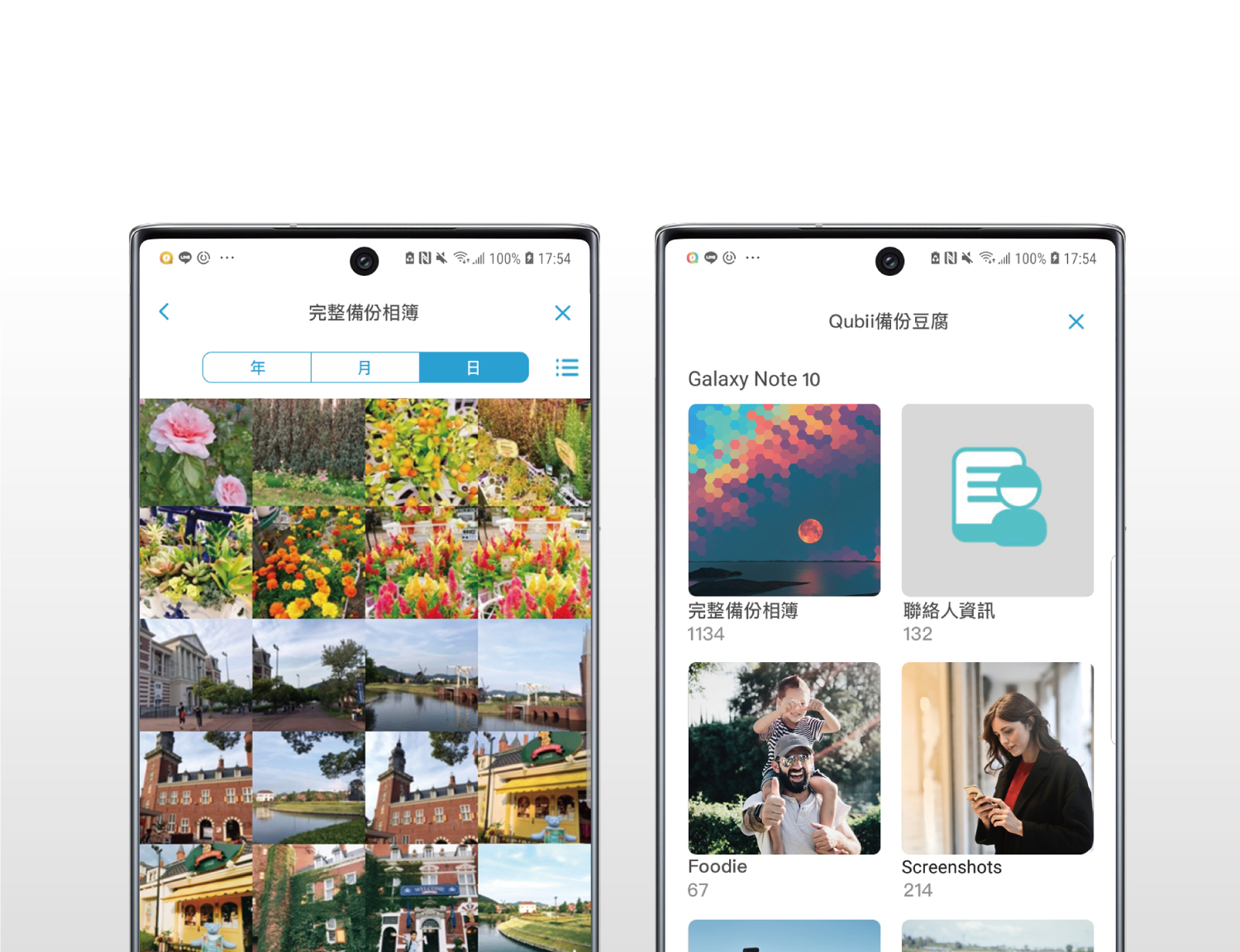 Qubii A安卓版可自動備份手機照片、影片、自建相簿、美圖秀秀、LINE Camera、小影等App相簿,透過APP以年/月/日瀏覽,搜尋照片最方便!