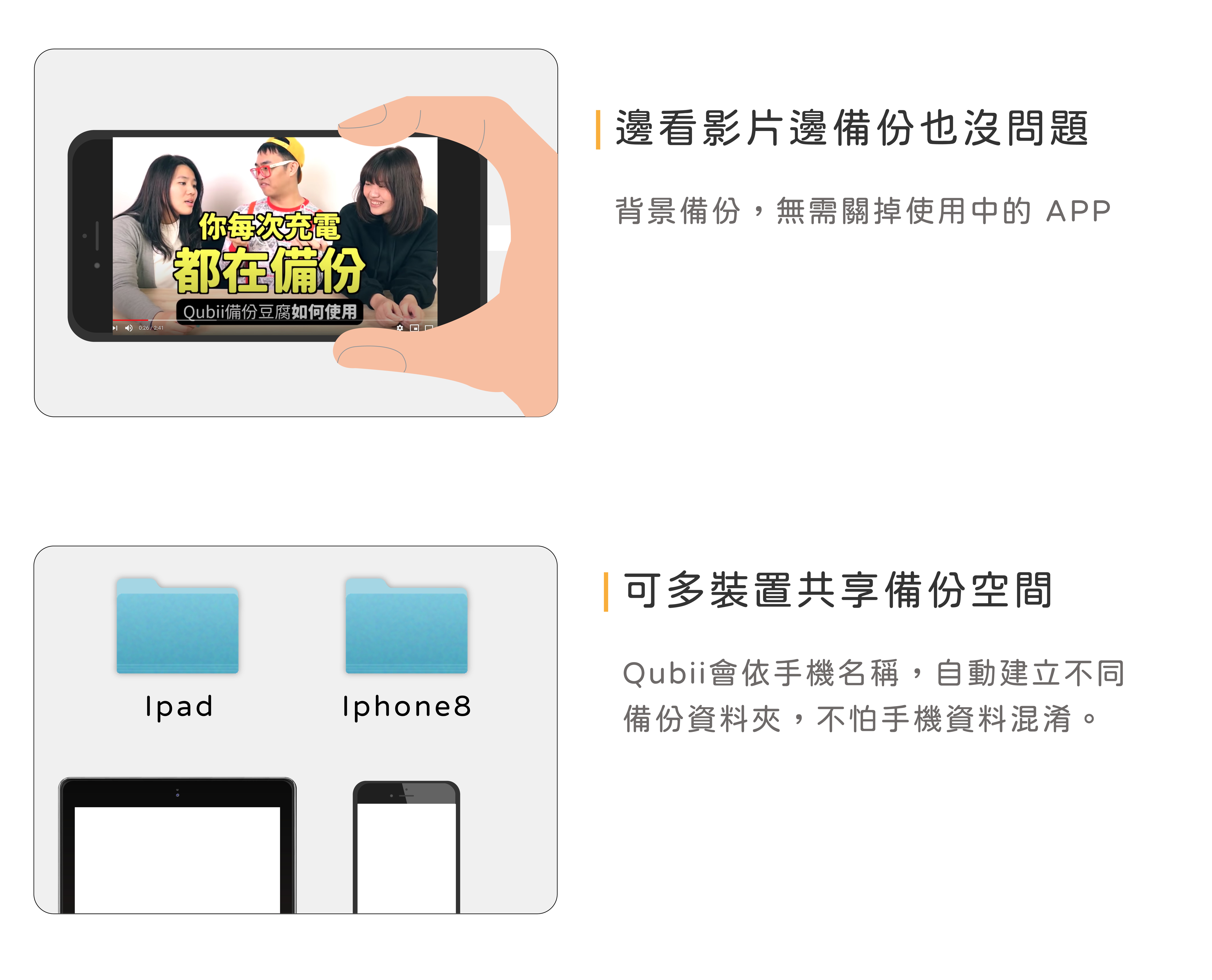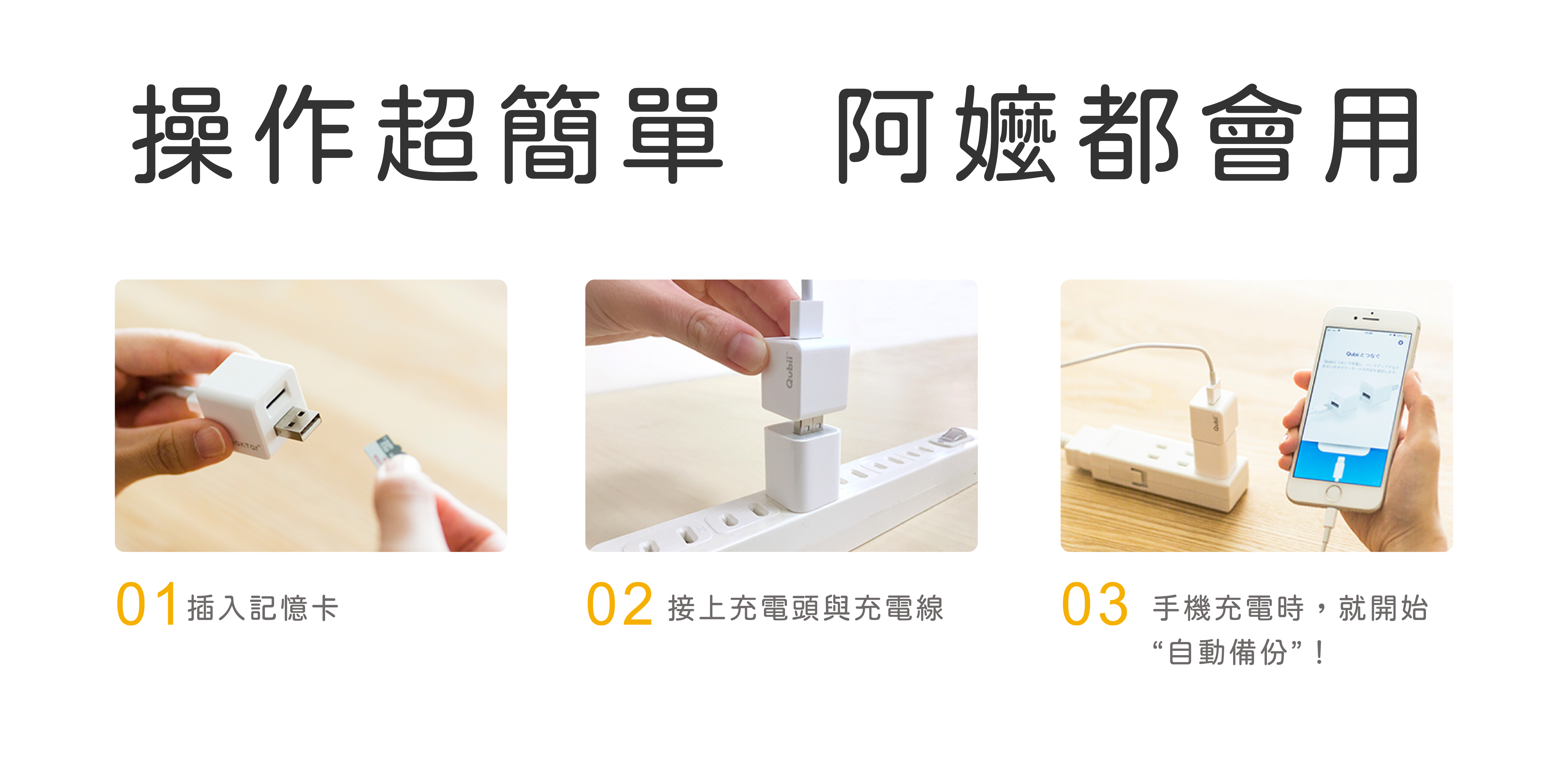 用多少容量就買多少容量,手機備份存在記憶卡裡,可以按手機容量需要選擇記憶卡容量 ,存滿了Qubii App自動提醒換卡,智慧型App設計,換卡不重複備份已備份過的檔案!記憶卡沒有容量限制,想存多少就存多少!