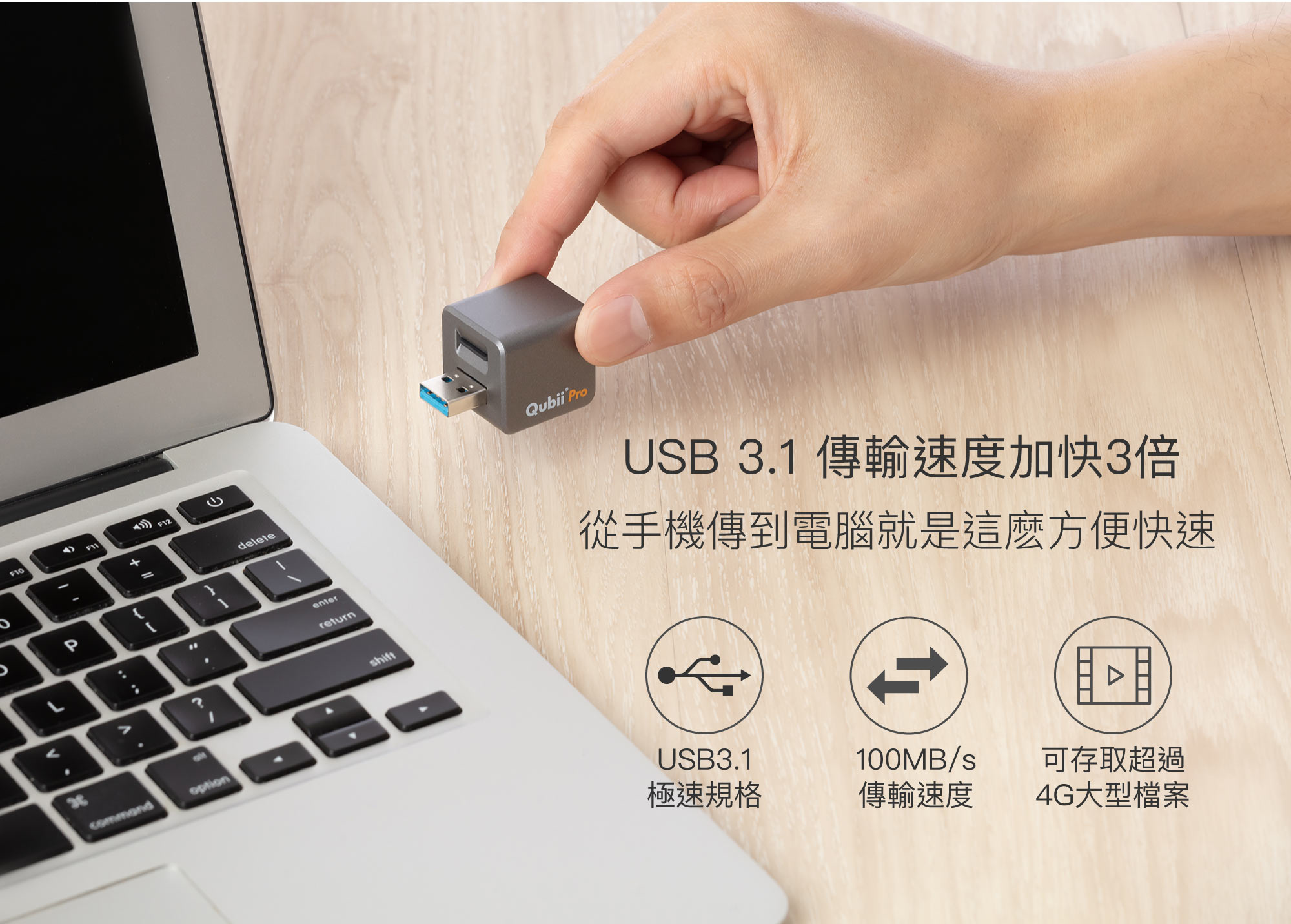 支援各種App檔案儲存(Keynote, Word, iMovie...),免網路或上傳雲端,檔案可以直接存到Qubii Pro的空間裡,工作效率提升100%,快來看看怎麼辦到!