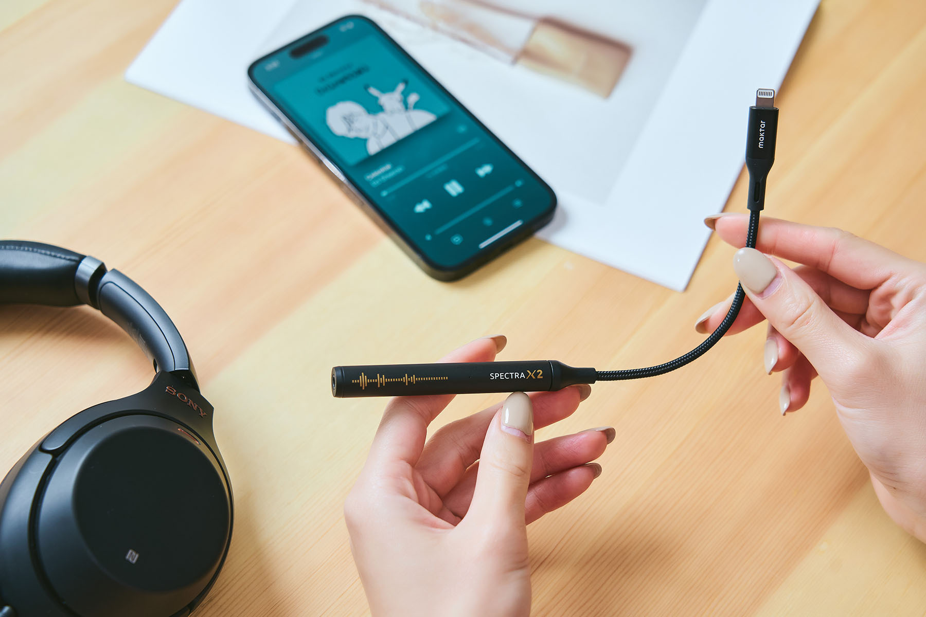 ▲ 想要聽到 Apple Music 最高音質,就是這麼簡單,將 Spectra X2 分別接上手機與耳機,即刻享受。