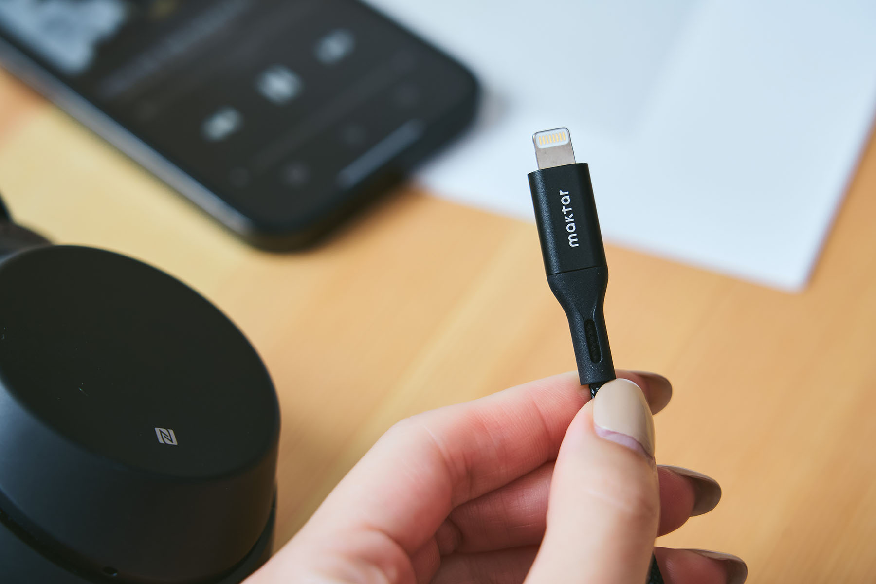 ▲ 以編織線體外覆的設計,讓 Spectra X2 能夠輕鬆且安心的彎折,小編手上的 Spectra X 歷經數年使用,仍保有十分完好的外觀與使用體驗,相信 Spectra X2 也不例外,且從照片中也能看出,這款耳擴配置的 Lightning 端子採用較為厚實的機殼打造,所以更能確保多次插拔端子時,設備的安全性。