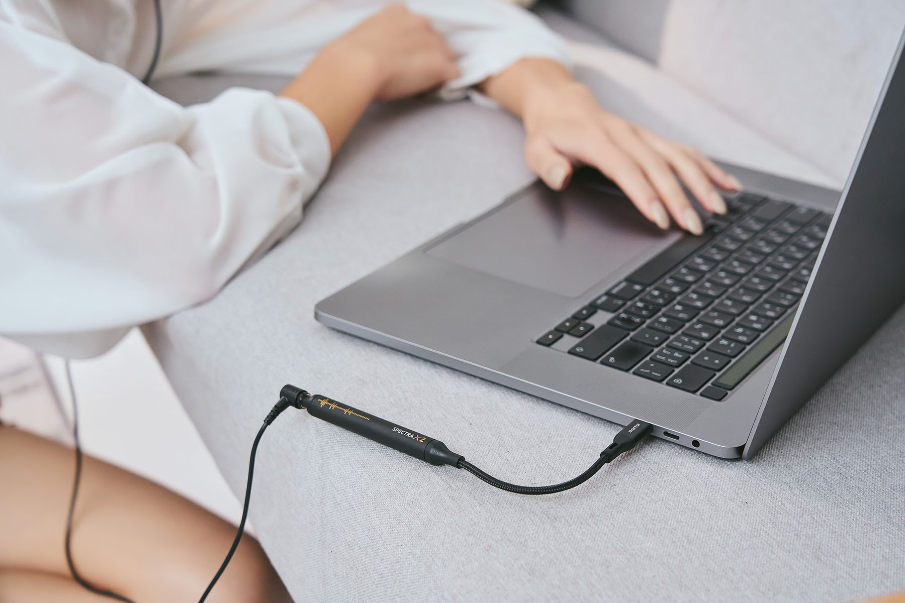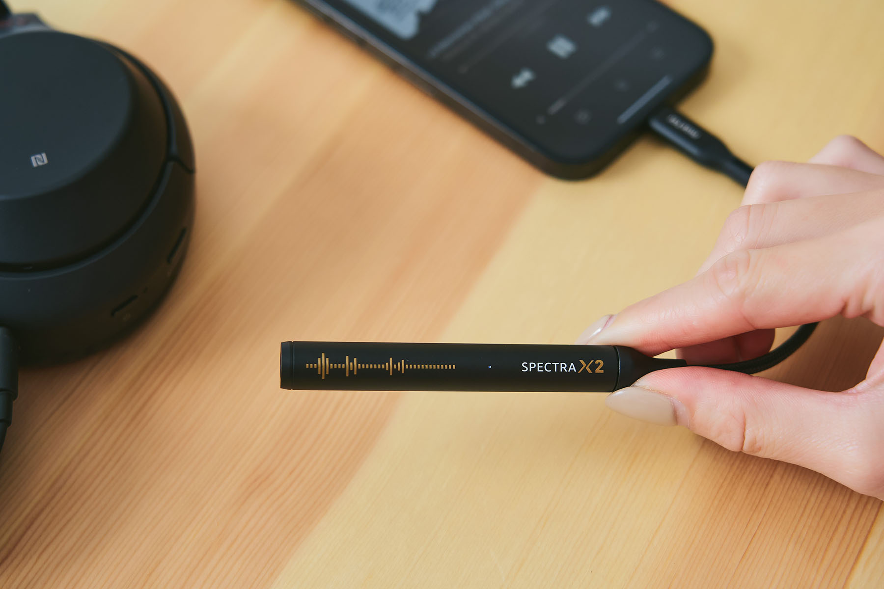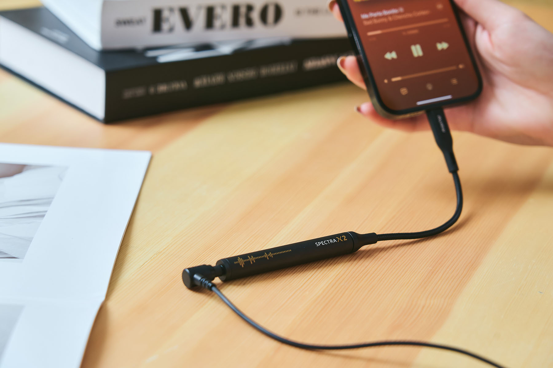 那麼明明藍牙耳機已經很普及的狀態,為何要透過有線連接的方式聽音樂呢?首先 Apple 所推出的 AirPods 系列耳機都僅支援 AAC 無線傳輸規格,屬於有損壓縮的音訊格式,並無法聽到真實保真壓縮的無損音質,其次縱使如 Android 系統已經具備最高達 990kbps 傳輸率的 LDAC 編碼,但實際聆聽比較仍能發現與有線傳輸在細節呈現上有差異,所以對於追求極致音質的愛樂者來說,將訊源(手機、電腦)透過 Spectra X2 連接有線 Hi-Res 規格耳機聆聽無損音樂,才是取得終極高音質的唯一手段。