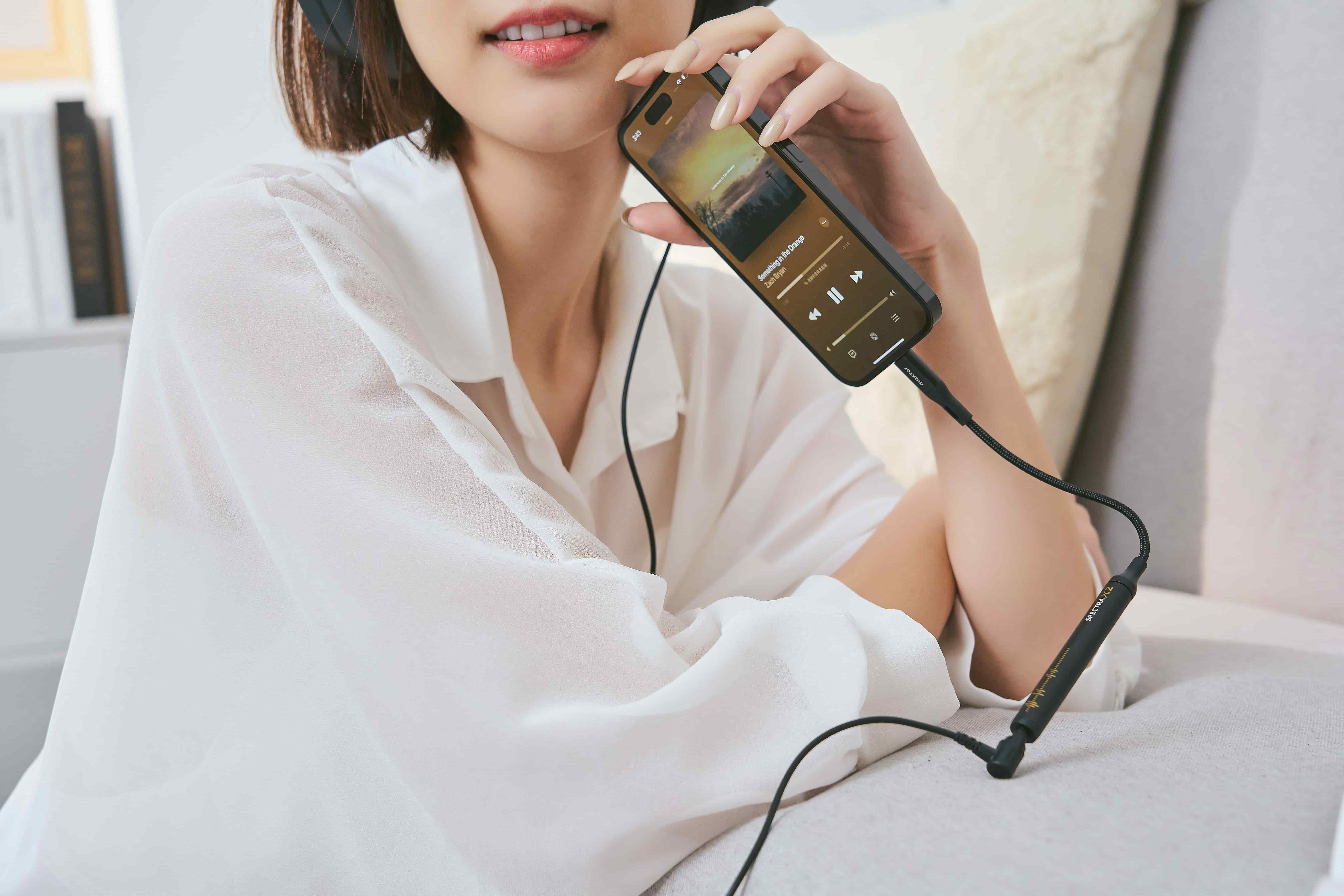 ▲ Apple Music 支援保真壓縮無損音樂格式後,帶來的最大影響,就是讓 iPhone 用家可以隨時隨地輕鬆透過網路取得最高音質的音樂,當然,要真正聽見 Hi-Res 格式的音效表現,仍需要外接 DAC,這也是 Spectra X2 最重要的價值之一,尤其因為 Spectra X2 機體設計時,考量到人們使用手機的方式相當多變,所以採用相對容易彎折且不易受損的編織線材,讓你可以坐著、站著,任何狀態都可透過 Spectra X2 連接手機與耳機聽音樂,或是觀賞影片。