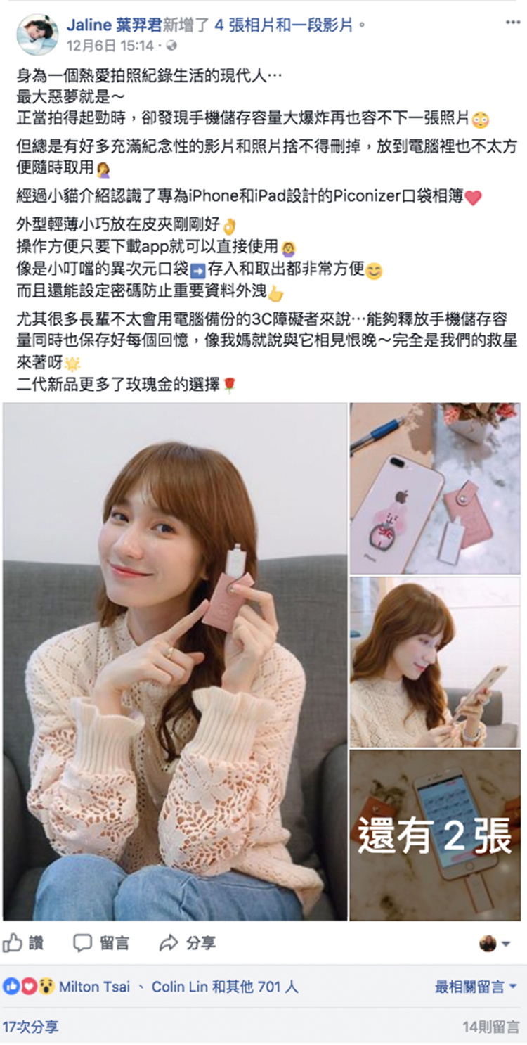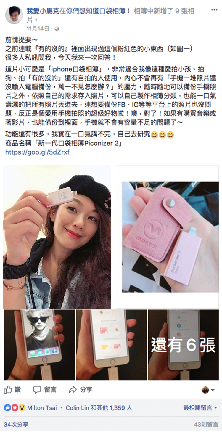 iPhone容量常在爆滿邊緣,幸好這次準備了Piconizer口袋相簿,讓我不管在下秀後在地鐵、咖啡廳、飛機上隨時把珍貴的照片影片飛速存進小巧的口袋相簿裡,讓我可以盡情的拍照無後顧之憂! 終於不需要一直刪除照片了(笑)
