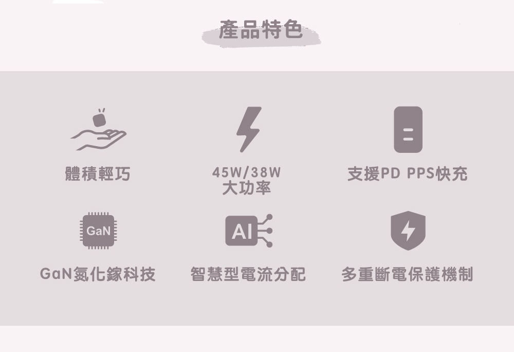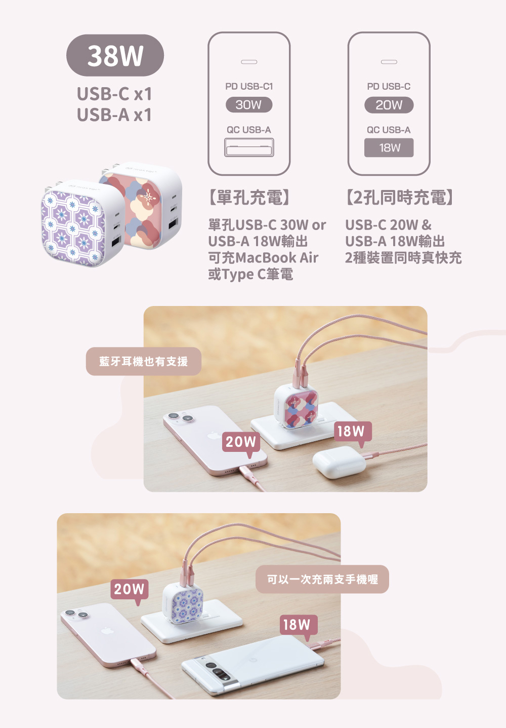 ⭕️ 38W 2孔 - USB-Cx1、USB-Ax1