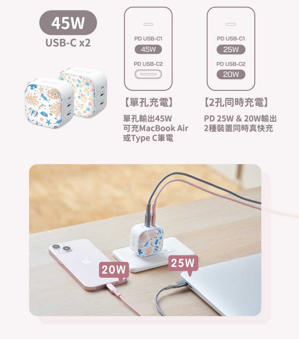 ⭕️ 智慧型電流輸出技術,2孔同時快充,可同時充手機、平板,手機半小時充飽50%以上