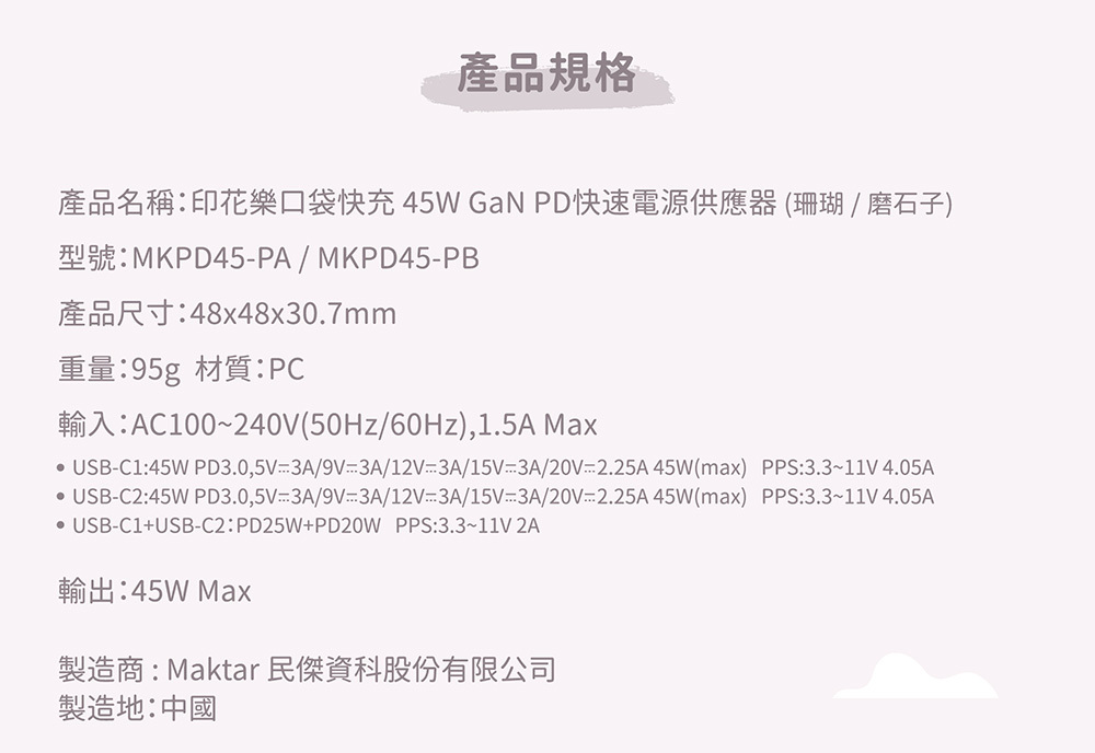 Maktar 45W Gan 印花樂聯名 充電器