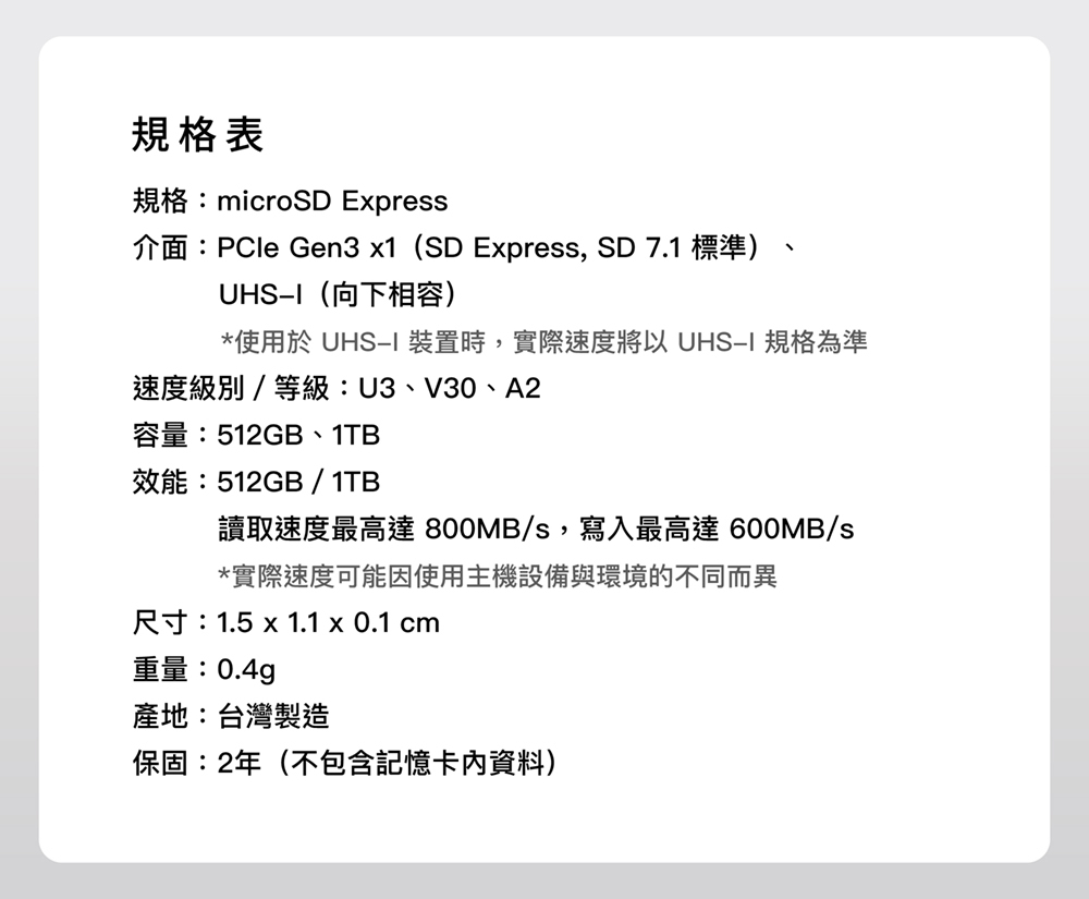 • 1TB Express 記憶卡|即將登場,敬請期待!