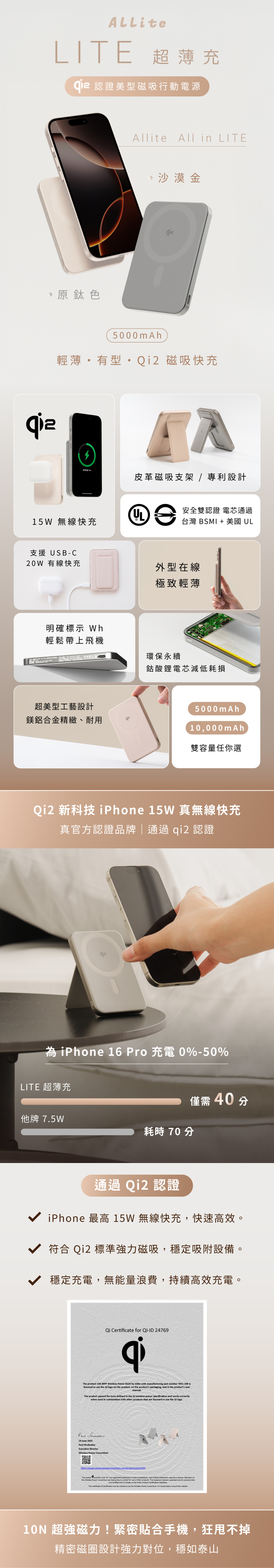 🧲 磁吸快充|Qi2 官方認證,對準位子立即充電