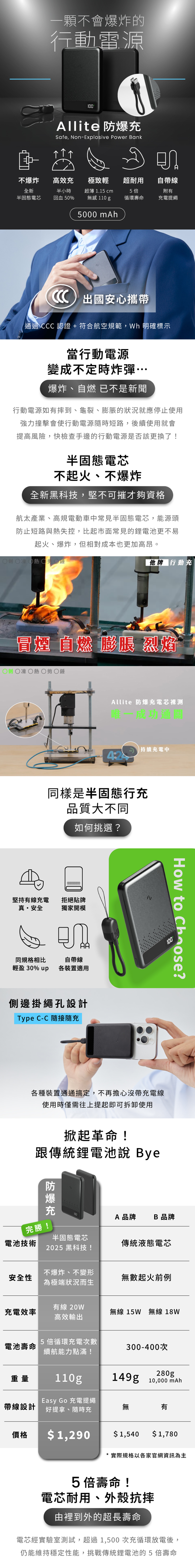 Maktar產品保固 | 2年產品名稱 : Allite 防爆充半固態行動電源 5000 mAh