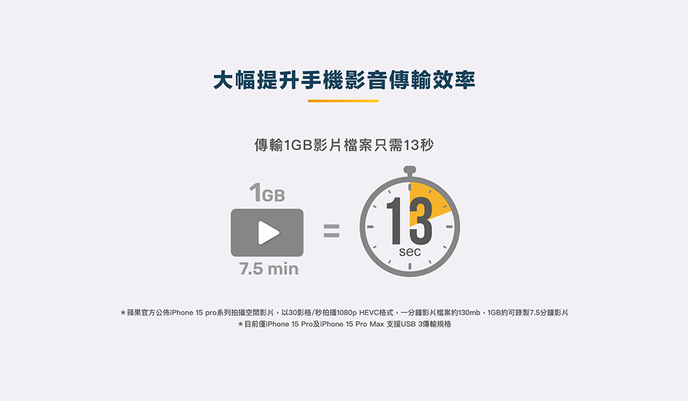 🗂️ 傳輸1GB影片檔案只需要13秒 * iPhone 15/16/17 Pro 系列適用